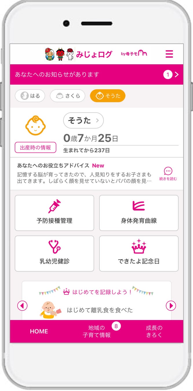この度、その取り組みの一つとして母子健康手帳アプリ『みじょログby母子モ』を導入しました。妊娠中の体調管理や、予防接種の予定確認、市からのお知らせ配信等、日々の子育てに役立つ機能がたくさん詰まっています。