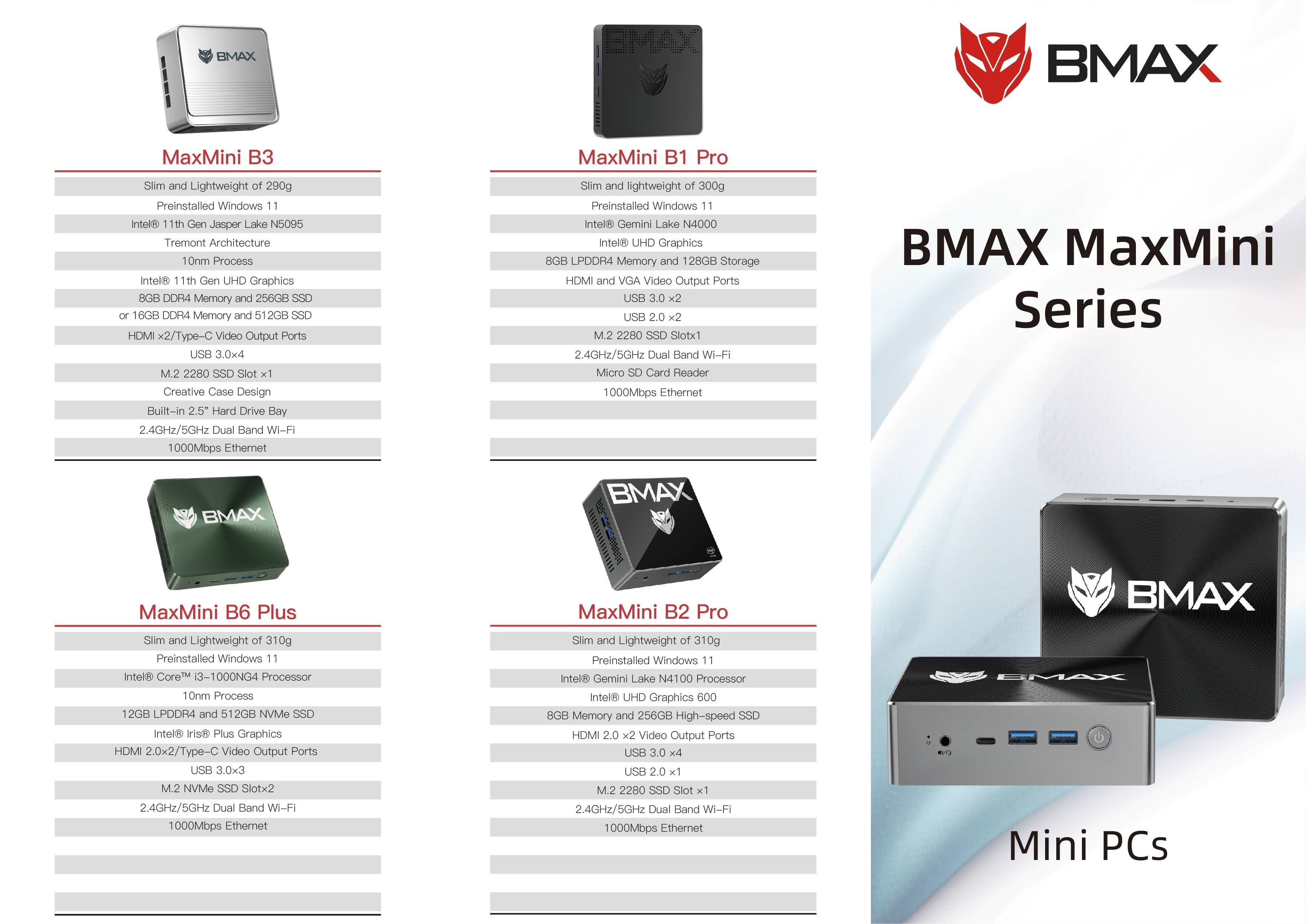 Intel® Jasper Lake N5095 4Cores ;4 Threads Base Frequency: 2.0GHz / Burst Frequency: 2.9GHz CPU,16GB(16GBx1)+512GB SSD,Windows 11,Windows 10,Linux(Ubuntuなど)/实測Ubuntu 22.04.2システムをサポートし,サイズ:125mm(L)×112mm(W)×47.0mm(H),重さ:約 410g,Wi-Fi ,Bluetooth4.2