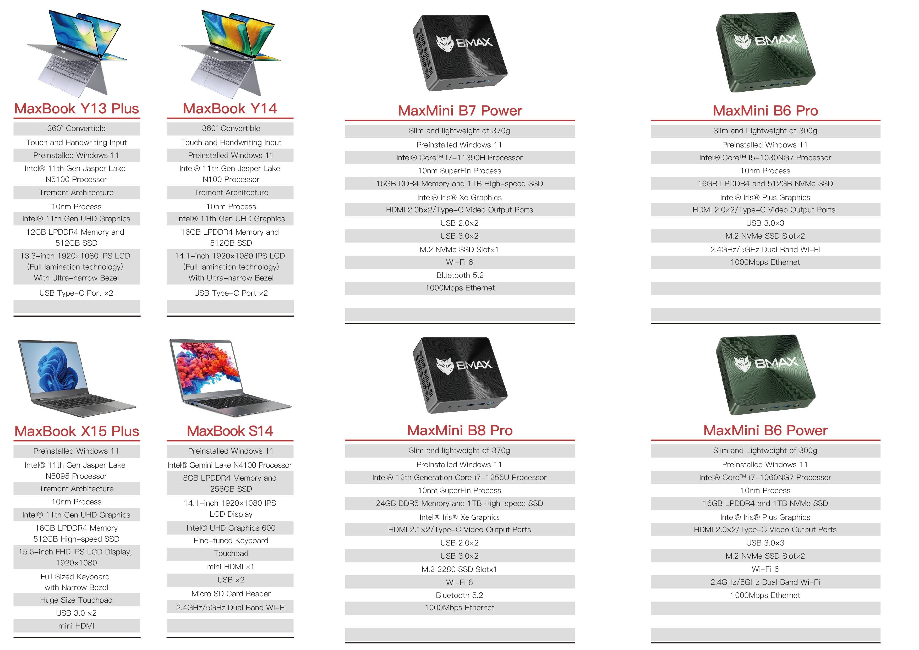 Intel® Core™ i7-1255U Processor 10 Cores ;12 Threads CPU,24GB LPDDR5/5200MHz+1TB NVMe SSD,Windows 11,Windows 10Linux(Ubuntuなど)システムをサポートし,サイズ:125mm(L)×112mm(W)×44.0mm(H),重さ:約370g,Wi-Fi 6,Bluetooth5.2