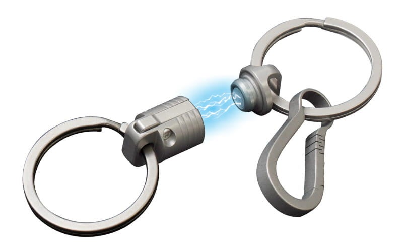 磁力の力で瞬間着脱。耐荷重30kgの強靭なロック機構を備えたキーホルダー『チタン製マグネットリリーサー』を発売