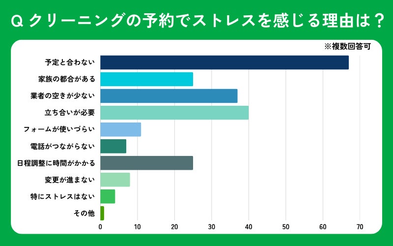 エアコンクリーニングの日程調整でストレスを感じる理由は何ですか?(複数選択可能)