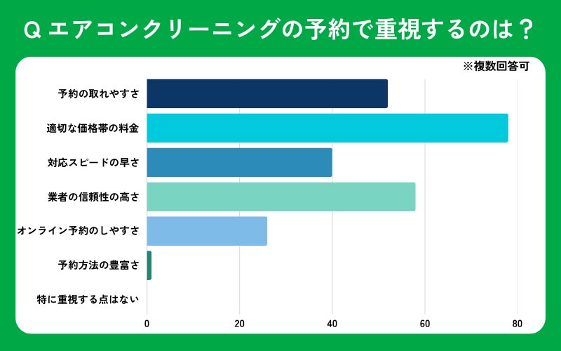 エアコンクリーニングの予約時に重視するポイントは何ですか?(複数回答可能)
