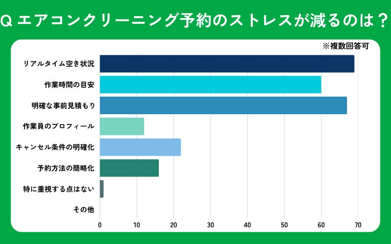 今後エアコンクリーニング予約時にどのような要素があるとストレスが減ると思いますか。(複数回答可能)