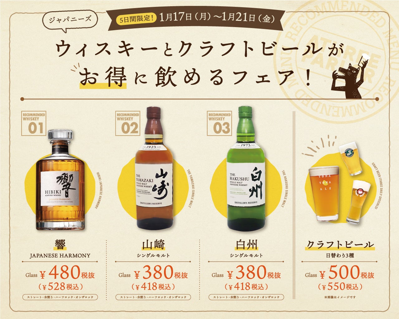 5日間限定!ジャパニーズウィスキーとクラフトビールがお得に飲めるフェアを開催