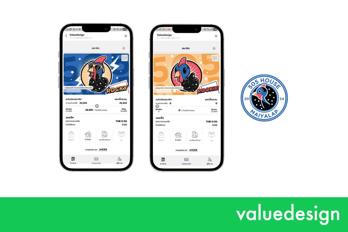 「505 House」は、2025年8月からリピート施策としてモバイルCRMサービスを導入されました。メンバーズカードは、1バーツのお支払いごとに1ポイントを付与。貯まったポイント数に応じて会員ランクがアップします。