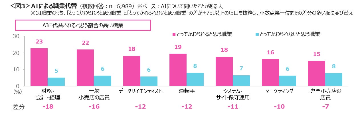 生成AIサービス「ChatGPT」が、認知・利用経験ともに突出 AIに代替されると思う職業「財務会計」「小売りの店員」