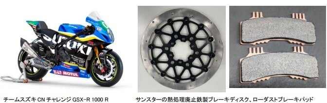 サンスターは、これまでも世界最高峰の二輪レースに参戦する多数のトップチームにレース専用ブレーキディスクおよびブレーキパッドを提供しています。この度のスズキからの呼びかけに賛同し、パートナー企業の1社として環境性能と制動性能を両立させたブレーキディスクとブレーキパッドを提供することといたしました。現在、製造工程での熱処理を廃止するなどの工夫により製造時のCO2排出量を半減させながら優れたブレーキング性能を併せ持つレース専用ブレーキディスクと、配合材料に銅を含まず粉塵の発生を抑えたレース専用ブレーキパッドを開発中です。今後も鋭意開発を進めながらテストを重ね、7月時点で実戦に耐えうる技術を最大限投入し、今回のレースの成功に貢献してまいります。