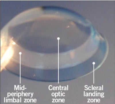 今回承認を取得した「Time XL」は、スクレラルレンズ(強膜レンズ)と呼ばれる特殊なハードコンタクトレンズです。角膜(黒目)よりも小さい一般的なハードコンタクトレンズに対し、強膜(白目)の部分まで覆う大きなサイズのハードコンタクトレンズです。強膜でレンズを支える構造により、レンズが角膜に直接触れない設計となっています。角膜とレンズの間で涙液を保持することから、角膜形状が特殊な不正角膜症例、中でもこれまで通常のハードコンタクトレンズを装用するのが困難だった方に対しても、より安定した視力補正と快適な装用感が期待できます。