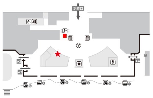 ポイント1 到着口からバスターミナルまでの動線に位置し、アクセス良好