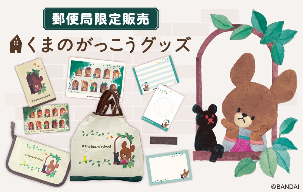 『くまのがっこう』絵本シリーズ20周年と、特殊切手「絵本の世界シリーズ第6集 くまのがっこう」の発行を記念して、郵便局限定販売の『くまのがっこう』グッズの第2弾(※)が登場します。