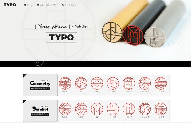 役所によっては実印として使うこともできる、タイポグラフィはんこ「TYPO」。まるで自分だけのロゴマークのようなデザインでできあがるハンコは、自分の名前ならどんなデザインになるか想像しながら到着を待つ、なんていうことも楽しさのひとつです。