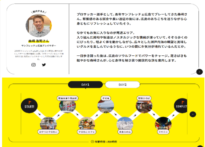 (例)「もしも、サンフレッチェ広島アンバサダーの森﨑さんが、毎日頑張る人に広島で心身を癒やすリフレッシュプランを案内するなら」