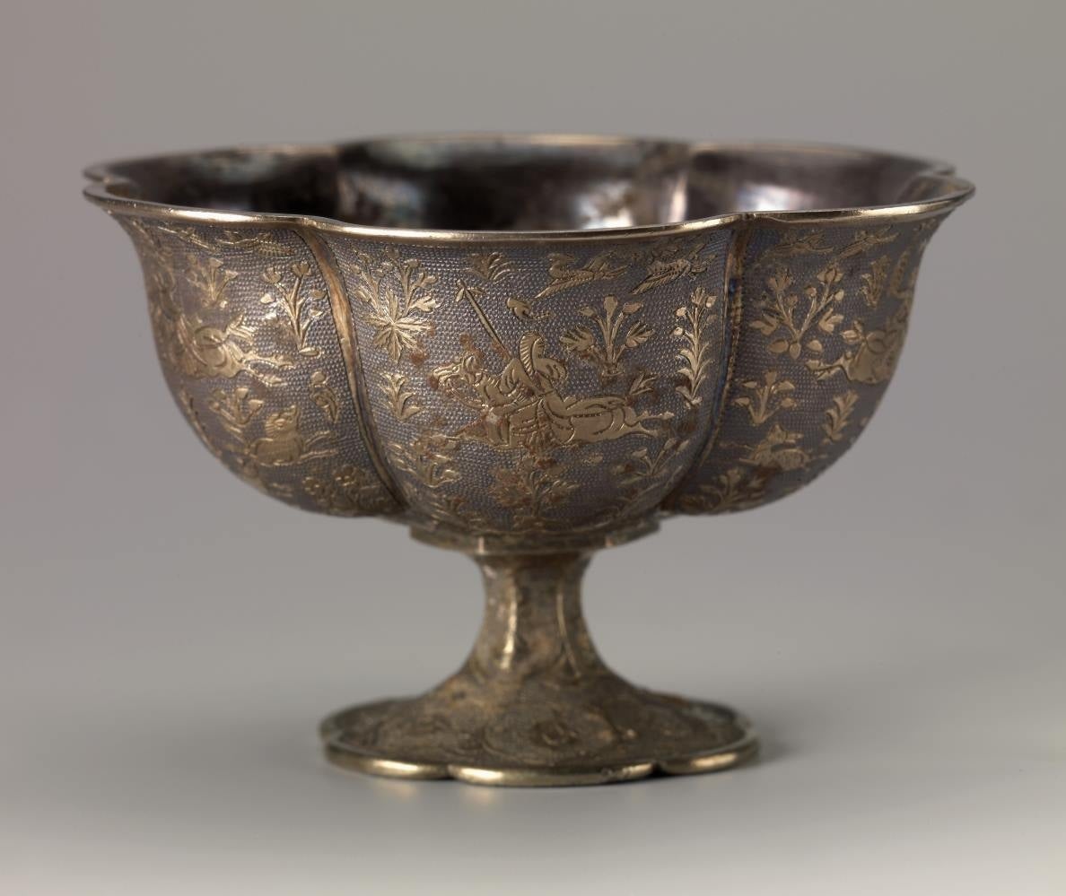 ・「鍍金狩猟文六花形銀杯」唐時代 ※重要文化財