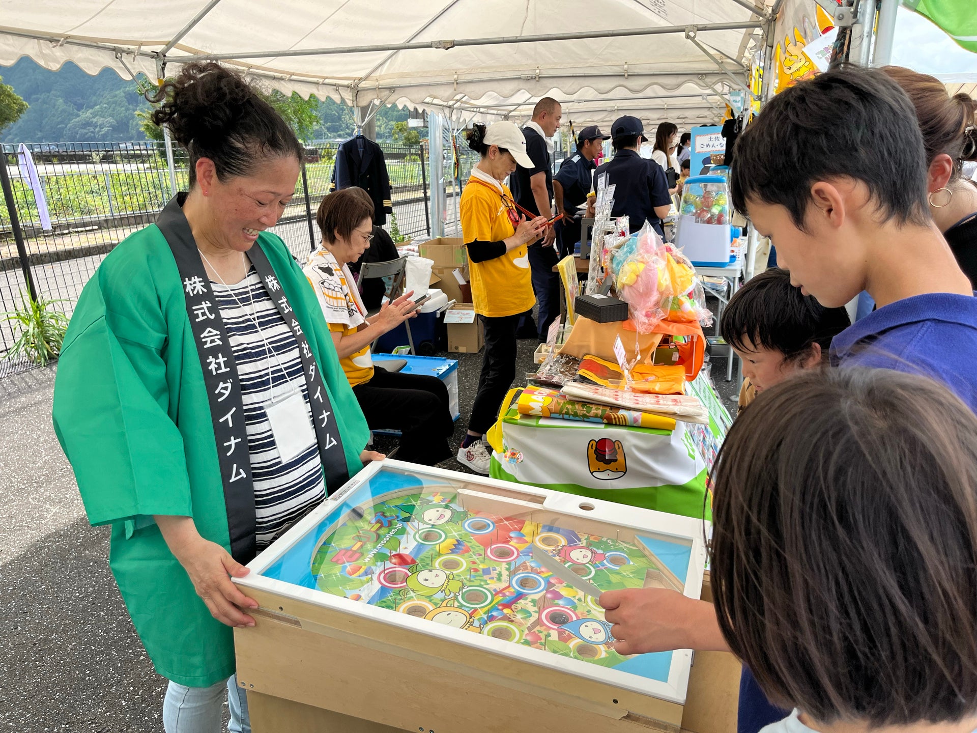 当イベントは、中四国最⼤級のご当地キャラクターイベントで、日本全国から約80体のご当地キャラが須崎市に集結し、ダイナムも今年で6回目の参加となります。2日間で28000人の来場者があり、ダイナムブースには約880人遊びに来ていただいています。ダイナム高知須崎店、高知土佐店、野市店の従業員がイベント運営に携り、無料のスマートボールやキャラクターとのフォトセッションを通じて、地域の皆様との交流を深めております。