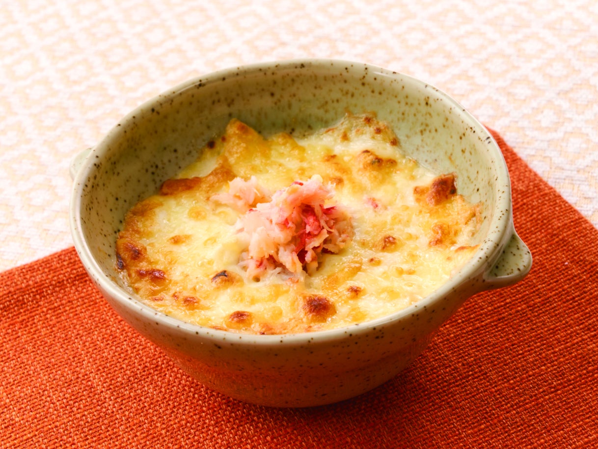 蟹の身・蟹味噌・舞茸等をホワイトソース・チーズで焼き上げた風味豊かなグラタン。