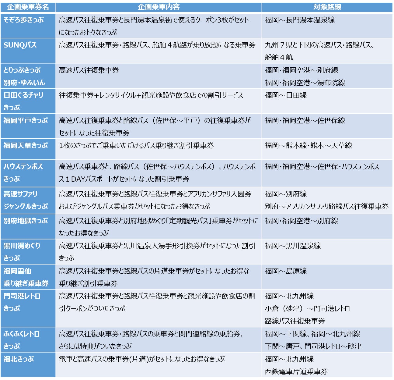 西鉄グループで取り扱っている企画乗車券一覧