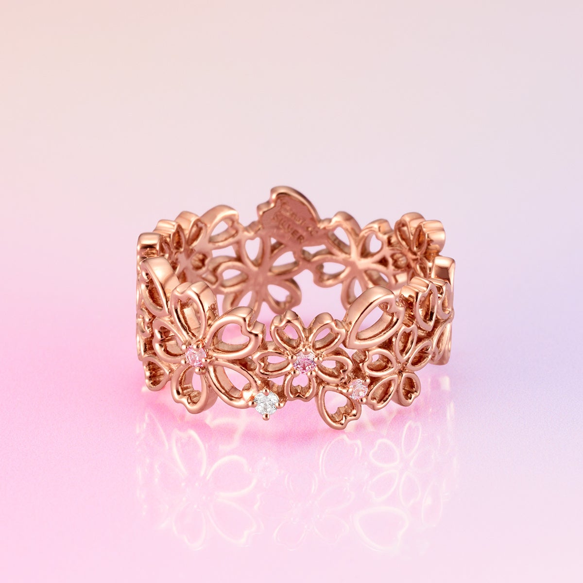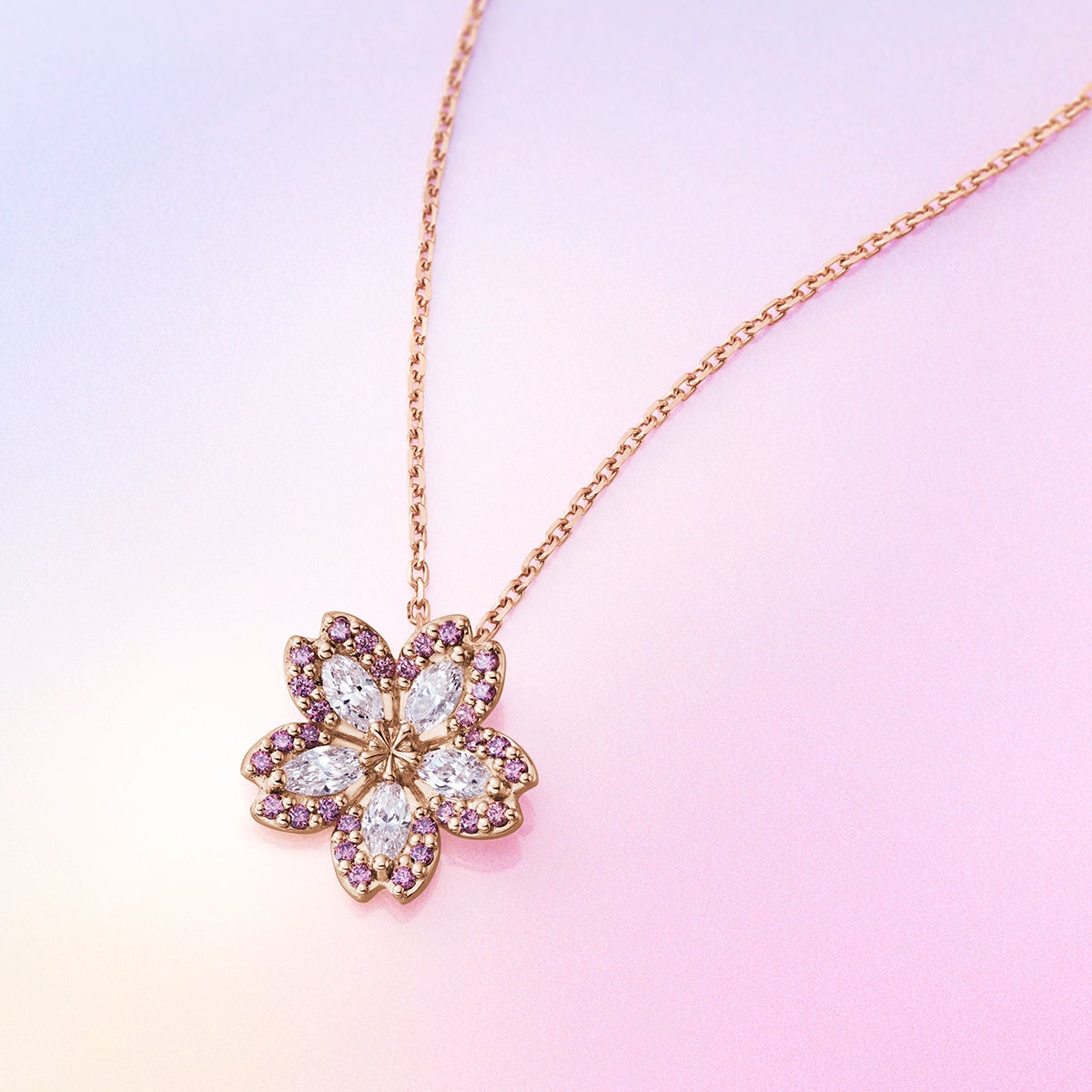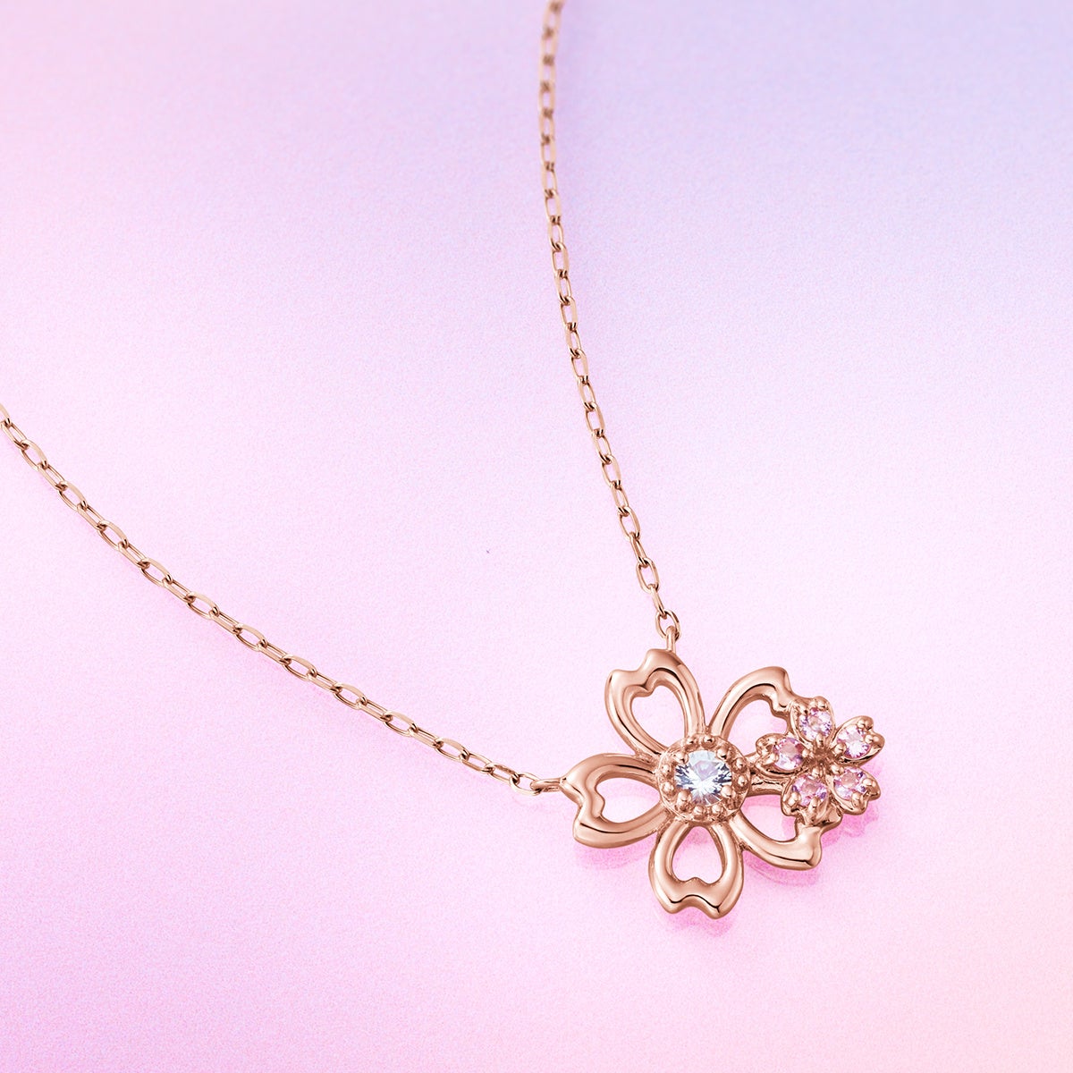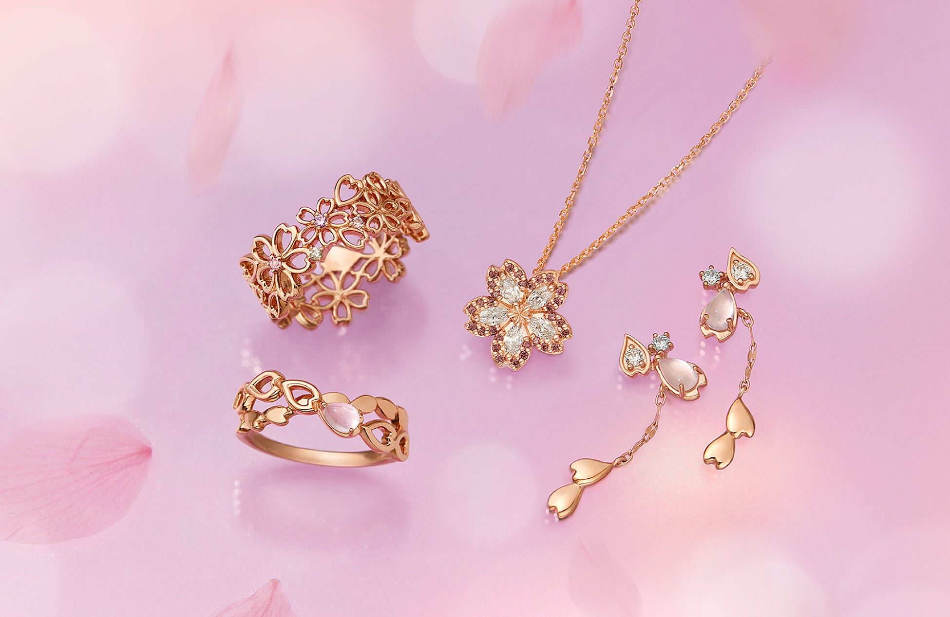 うつろいゆく春の気配を、肌にふれるジュエリーへ。桜と夕暮れの空が重なり合う一瞬の情景を淡いピンクやパープルの色調で、花びらが風に舞う姿を重なり合う軽やかな透かし模様に仕立てました。“出会いと別れ”、“ときめきと切なさ”が交錯するこの季節。その揺らぎにそっと寄り添うような、華やかでありながらも穏やかなラインナップです。ひとつ着けるだけで、胸元に春の香りを宿すようなデザインは、まるで心に咲く一輪の花のように、静かに彩りを添えてくれます。ふわりと風に舞う桜のように。うつろう日々の中でも、大切な瞬間をそっと記憶に刻んでくれるコレクションです。