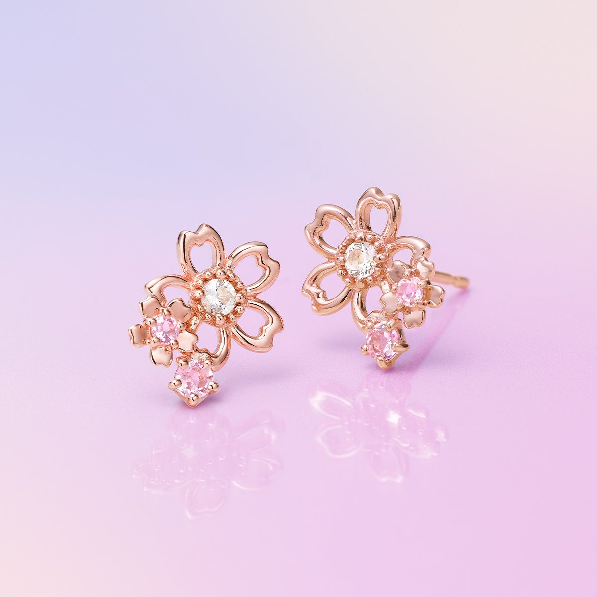 春の訪れとともに、花が咲くように変化する気持ち。そんな一瞬一瞬のときめきを、さくらモチーフに重ねたシリーズ。チェーンを付け替えてアレンジできる2way仕様や、耳もとで揺れるパーツの組み合わせなど、“自分らしい春”を見つけられる、遊び心あるラインナップがそろいました。淡いピンクやパールカラーのグラデーションは、花びらが空にほどけていくような軽やかさを添えて、日常にも、特別な日にも、そっと寄り添います。春という季節が持つ、移ろいと希望をジュエリーに込めて。動きのあるデザインで、日々の仕草までも美しく彩るシリーズです。