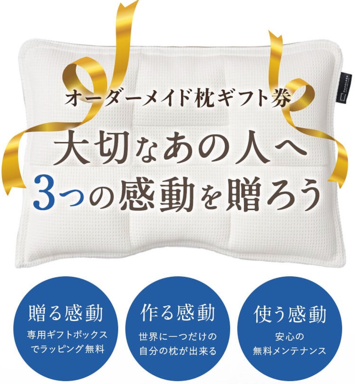 まくらぼのオーダーメイド枕ギフト券は、単なる「枕のプレゼント」ではなく、受け取った方が、「もらう」「つくる」「つかう」の3つの感動を体感できるギフトです。
