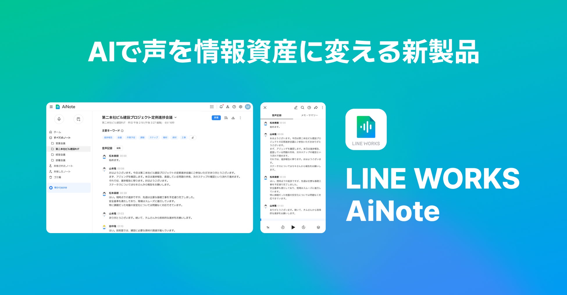 LINE WORKS、AI議事録自動作成ツール「LINE WORKS AiNote」を11月下旬より提供開始