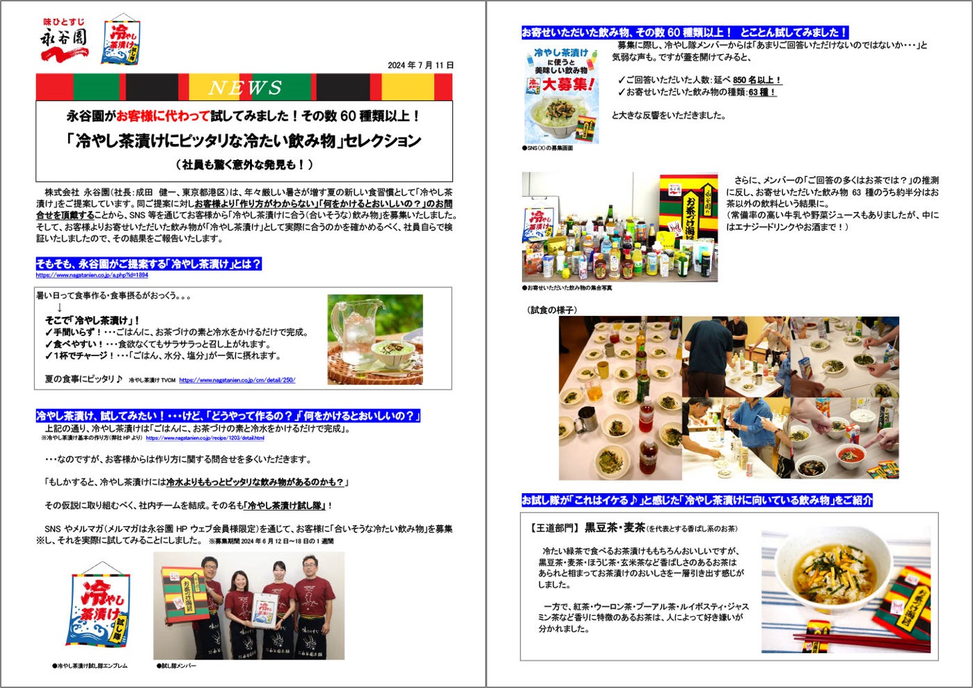 ~思わず試したくなる!~お茶づけに合う冷たい飲み物60品強、体を張って、すべて試した「冷やし茶漬け試し隊」の取り組みを伝えたリリース内容をご評価いただきました!