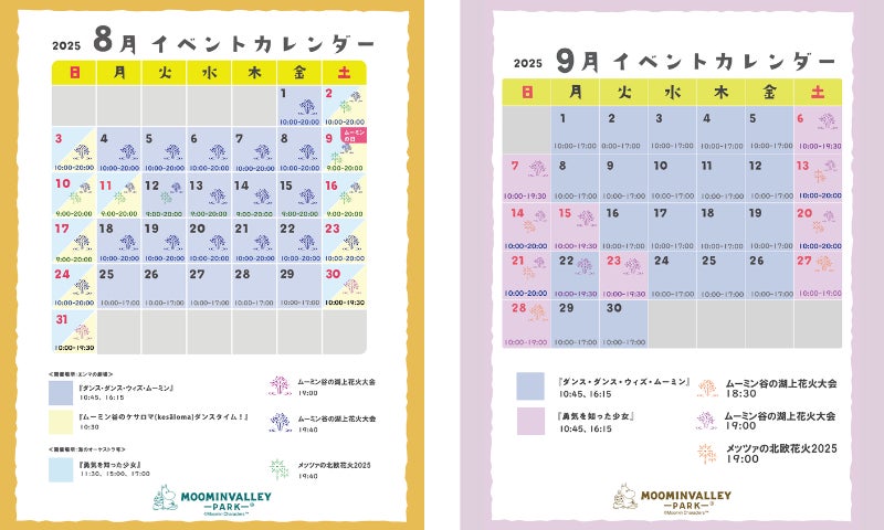 中止情報についてはムーミンバレーパーク公式サイト、SNS 等でお知らせ。