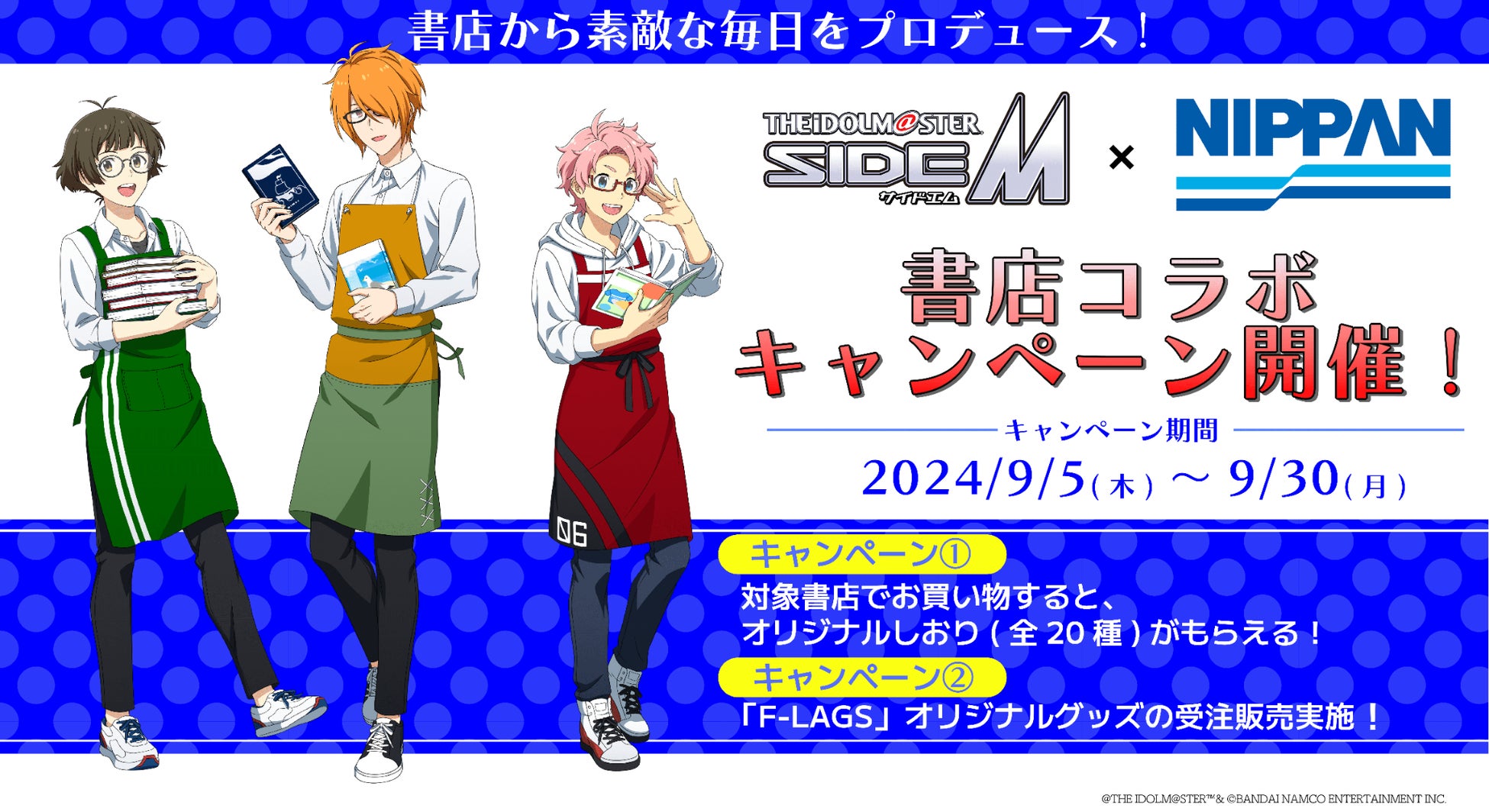 日本出版販売株式会社(代表取締役社長:奥村 景二、略称:日販)は、株式会社バンダイナムコエンターテインメントが展開する「アイドルマスター SideM」とのコラボキャンペーンを2024年9月5日(木)~9月30日(月)まで、全国577書店にて開催します。