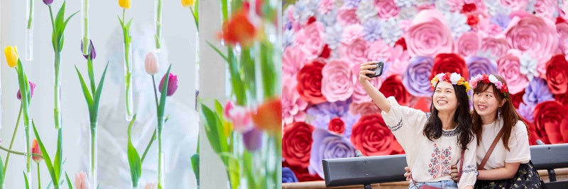 フォトスポットにおすすめなのが、チューリップ(3月)やカーネーションなど春の花のアート作品が癒しの空間を演出する「フラワーパサージュ」と、アーティスティックな花のオブジェが立ち並ぶ「フラワータウン」。思わず写真を撮りたくなるはず!