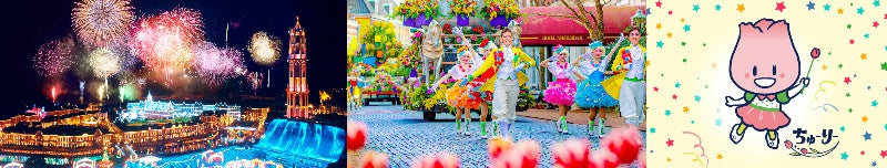 生花で彩られたパレードカーとカラフルな衣装を身にまとったキャストたちによるパレードや、春の訪れを祝うメイポールダンスは必見。今年からは新ちゅーりーも参加しパワーアップします。さらに、「歌劇 ザ・レビュー ハウステンボス」をはじめ、ショーキャストたちによる春バージョンのショーもご覧いただけます。