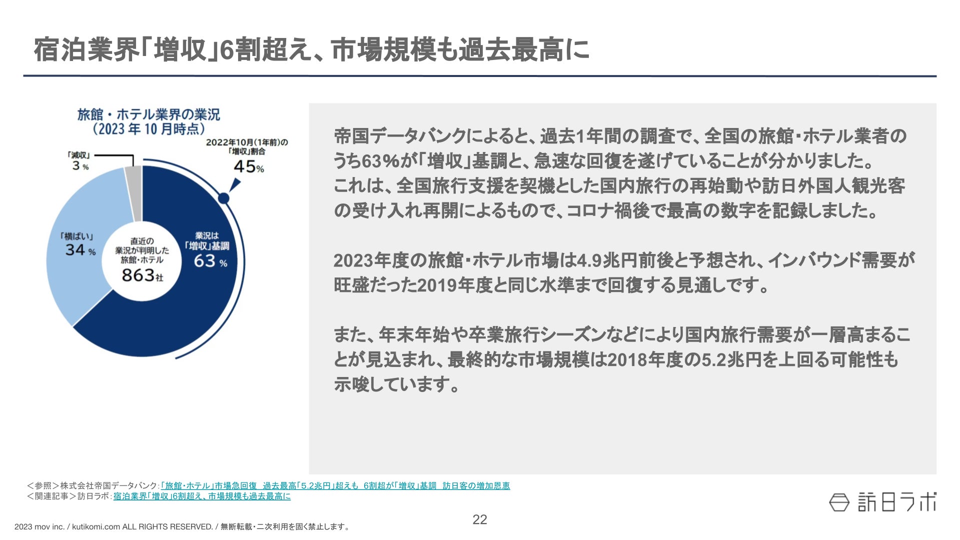 宿泊業界「増収」6割超え、市場規模も過去最高に