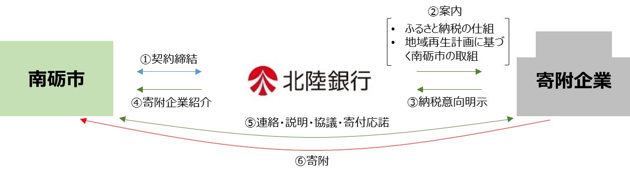 南砺市の本制度の対象事業に関する情報を、寄附を検討する当行のお客さまに提供することで、民間企業の本制度の活用を促進するとともに、ひいては官民連携事業の創出を通じた地方創生の推進を図ることを目的とします。