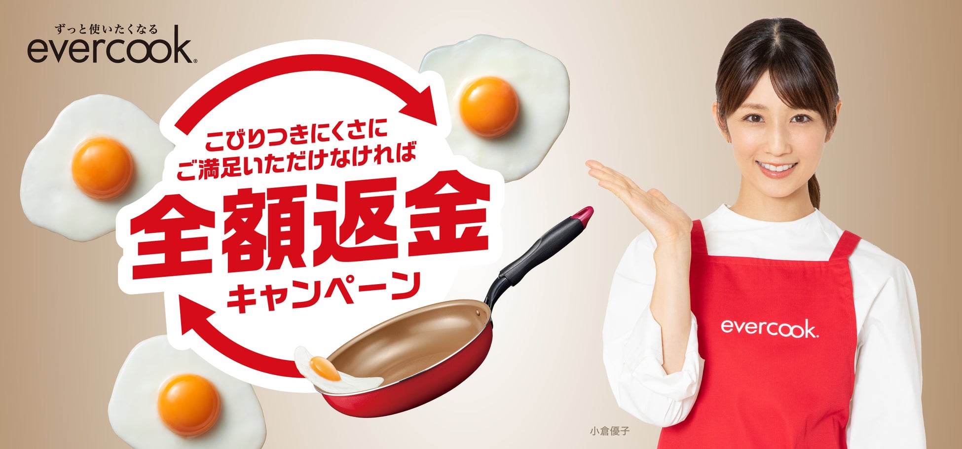 小倉優子さんがイメージキャラクターのevercookよりこびりつきにくさに満足いただけなければ『全額返金キャンペーン』を実施
