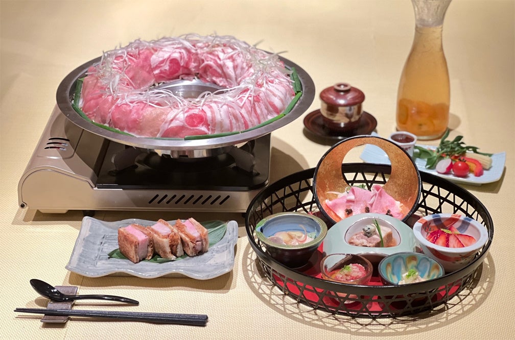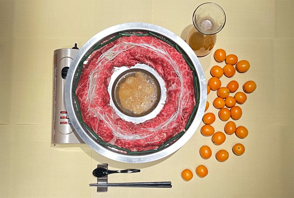 金柑のさわやかな香りと旨味が溶け込んだ出汁で、厳選したA5黒毛和牛と美ら島あぐー豚をお楽しみください。