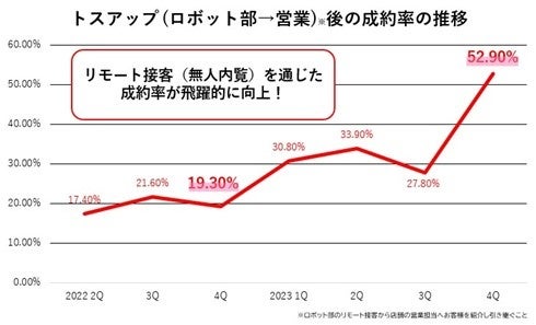 ロボット部のITを活かしたリモート接客の浸透と優位性は、成約率の推移から今後もますます発展していくと予想しています。