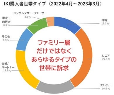 2023年3月期(2022年4月~2023年3月)のご契約者の世帯タイプを見ると、60歳以上のシニア世帯が27.5%と一番多く、次いで60歳未満のご夫婦・2人世帯が18.7%、ファミリー層が16.5%とあらゆるタイプの世帯にご契約いただきました。