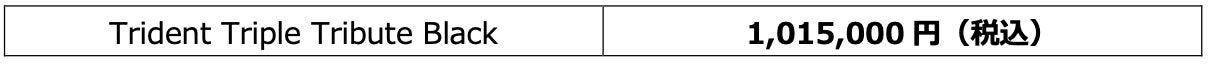 新型「Trident Triple Tribute Black」は、1,015,000円で購入可能です。このクラスではトップレベルの10,000マイル(もしくは1年間)の保証と、驚くほどの低価格を実現しています。詳しくは、トライアンフ公式WEBSITEまたは、全国のトライアンフ正規販売店お越しください。