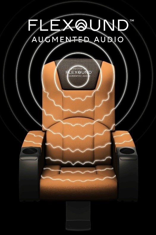 FLEXOUND Augmented Audio™とは、フィンランドの拡張音響システム開発会社FLEXOUND™社の特許技術による音響システムです。この音響システムは「音と振動」を発生させるスピーカーが内蔵された椅子を使用しています。椅子の枕や背部から発する「音と振動」により身体全体で音を感じることができ、あらゆるジャンルの映画で、これまでとは違う臨場感のある映像体験をすることができます。「ローソン・ユナイテッドシネマ STYLE-S みなとみらい」では全12スクリーン全席にこのシステムを導入いたします。これは世界初の試みです。