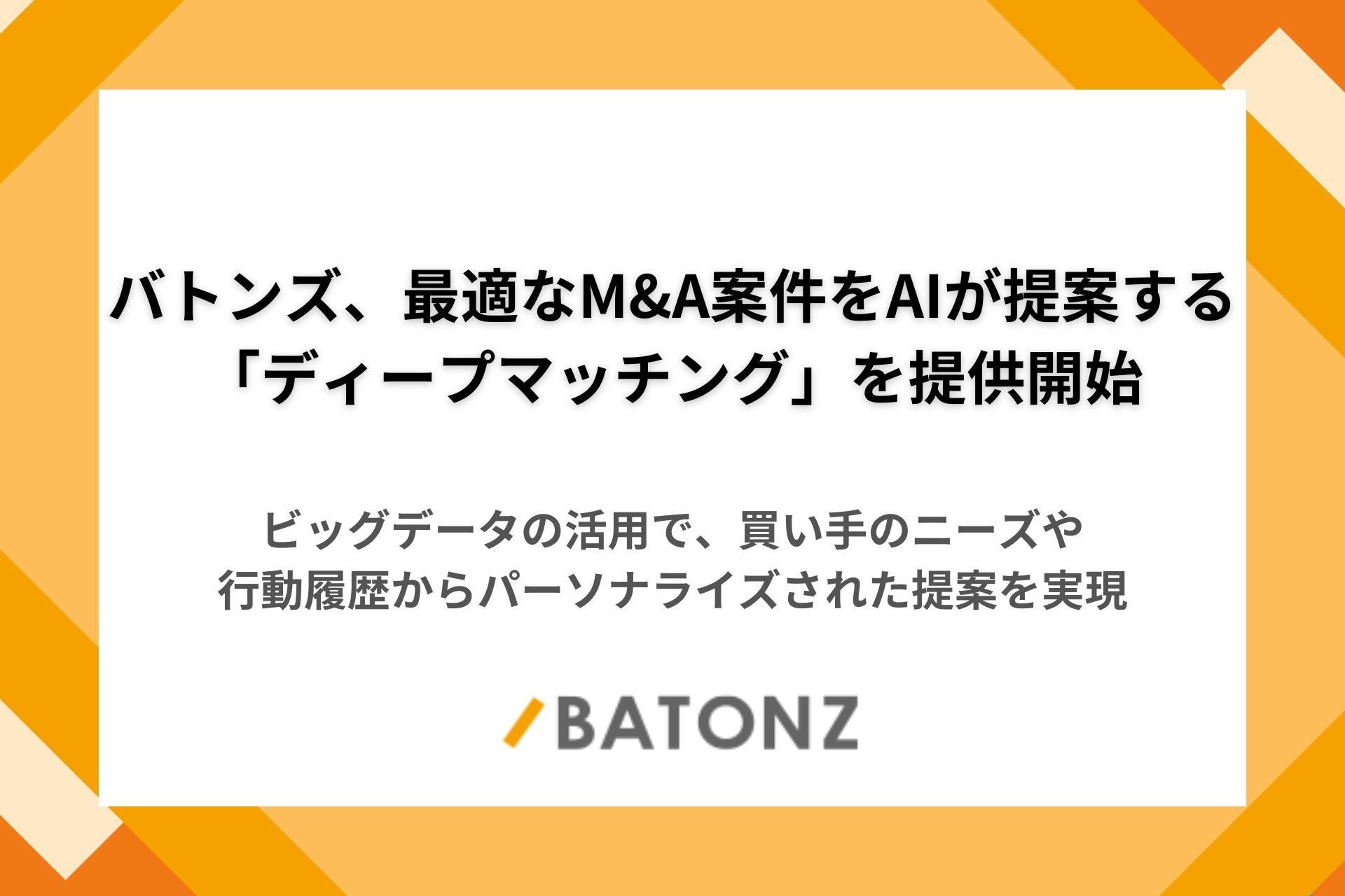 バトンズ、最適なM&A案件をAIが提案する「ディープマッチング」を提供開始