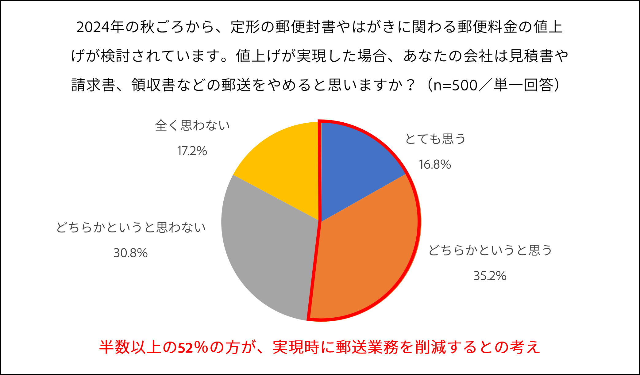 2024年秋予定の郵便料金値上げで、52%が見積書・請求書・領収書などの郵送をやめると回答