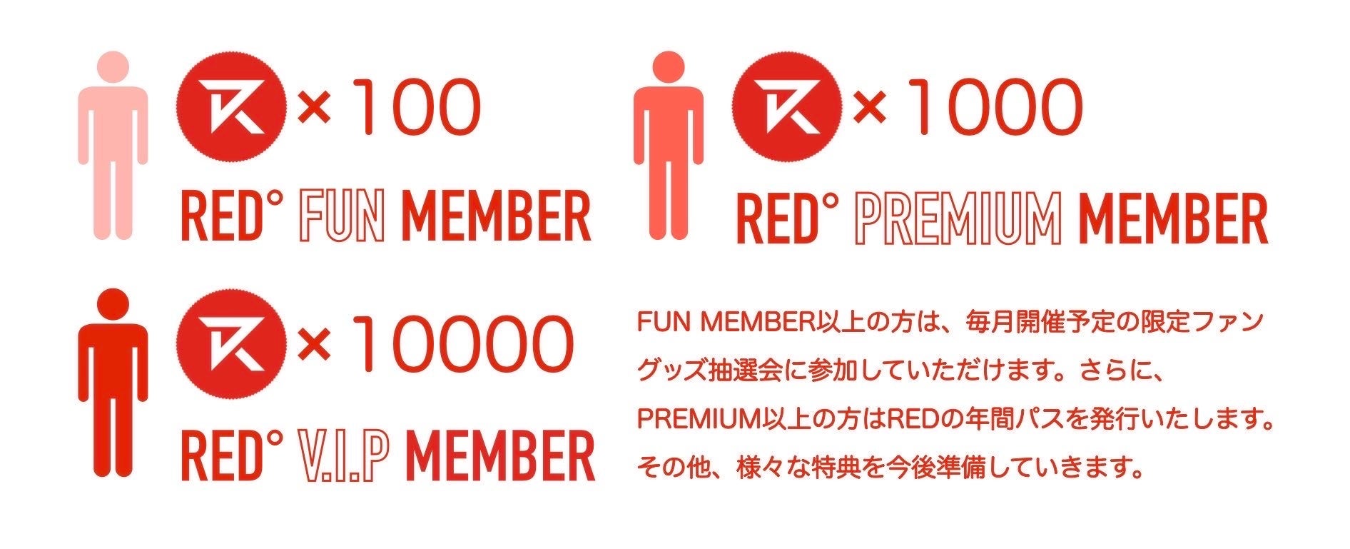 RED° TOKYO TOWERにまつわる限定体験や、アイドルやアーティストの限定グッズや限定特典、各種イベントなど、最先端のテクノロジーと有名アーティストやIPの権利を集積できるREDだからこそ実現するプレミアムな機会を提供していきます。