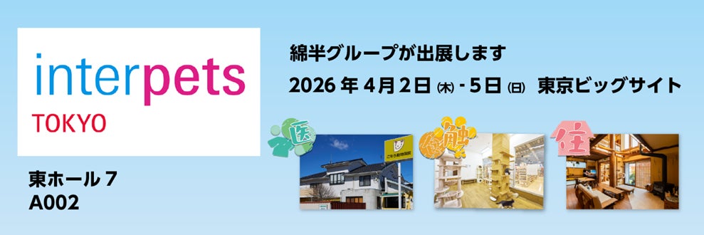 綿半パートナーズ株式会社(長野県飯田市 代表取締役社長︓野原佳代子)およびグループ会社の株式会社綿半林業、株式会社綿半インテック、有限会社小諸動物病院は、この度、2026年4月2日(木)から 4月5日(日)まで東京ビックサイトにて開催される日本最大級のペットイベント「第15回インターペット東京」に出展します。