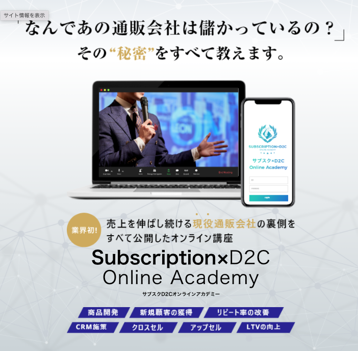 サブスク×D2C オンラインアカデミーは、動画で学べるオンライン講座です。