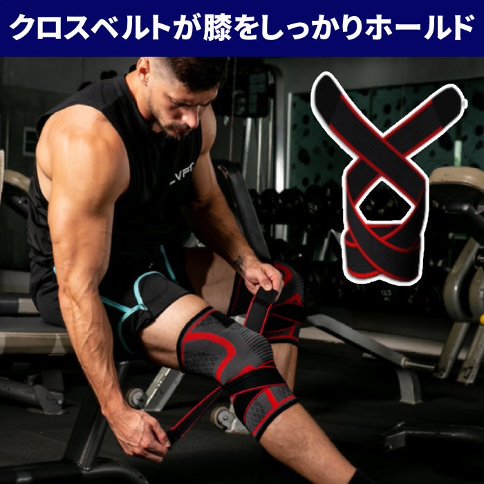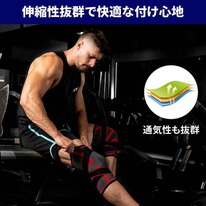 2本の加圧式ベルトで調節可能な膝サポーター。