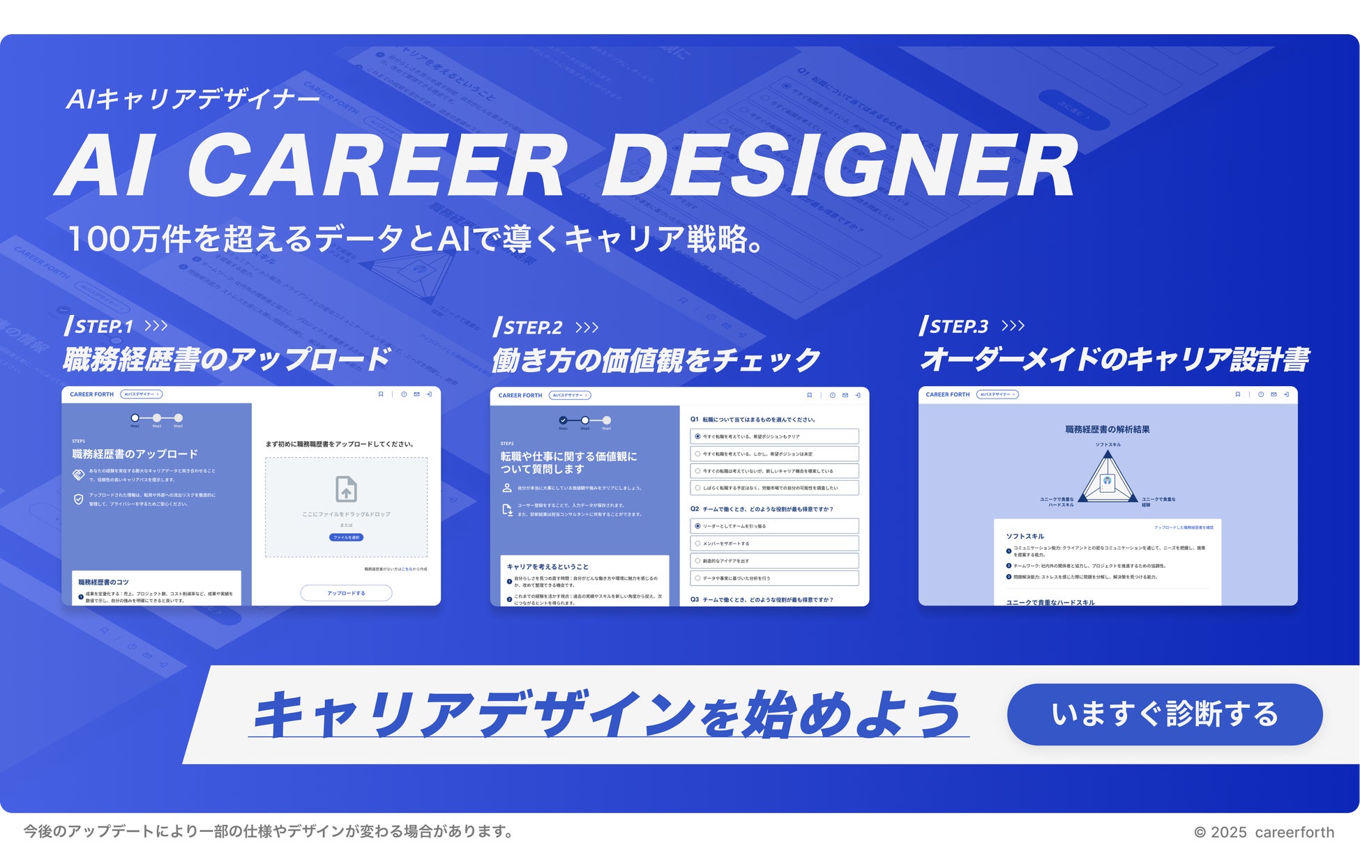 「AIキャリアデザイナー」は下記URLより無料・登録不要でご利用いただけます。