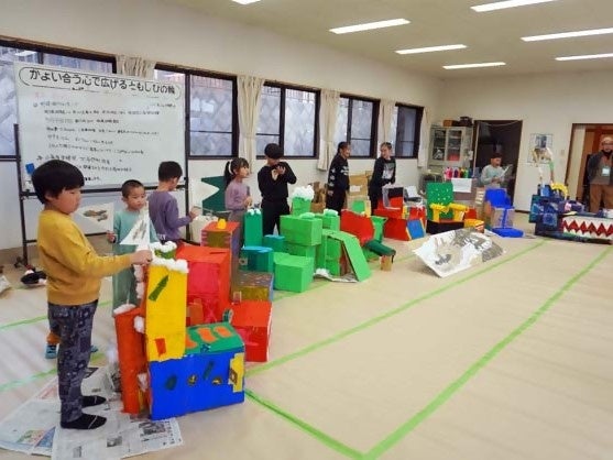 現代美術家 開発好明さんによる、段ボールなどでオリジナルのイスをつくり、連結させて大きなドラゴンを出現させるワークショップ。ドラゴン演芸場の中で実際に座って公演を鑑賞できます。
