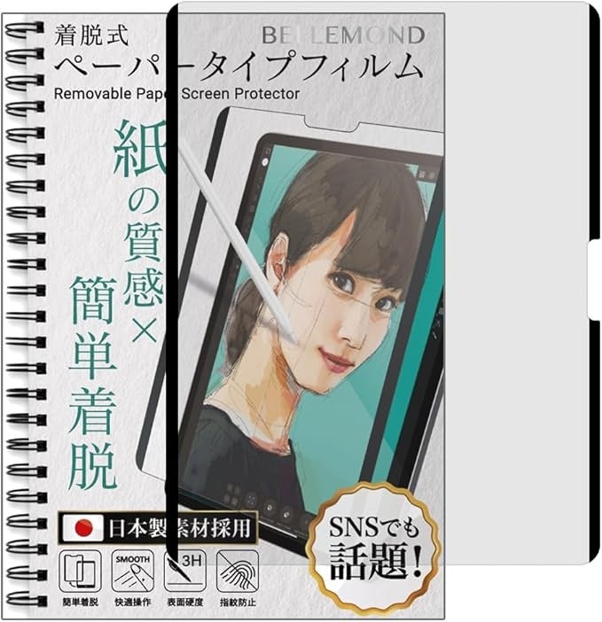 紙感覚はBELLEMONDが2019年より販売している日本国内製造(または日本製素材採用)ペーパータイプフィルムです。紙と鉛筆を使った時のような摩擦係数を追求し、紙のような描き心地を再現しています。iPadをキャンバスにしてイラストを描く、学校でのノート代わりに使う等、iPadをもっとクリエイティブに使うためのフィルムです。
