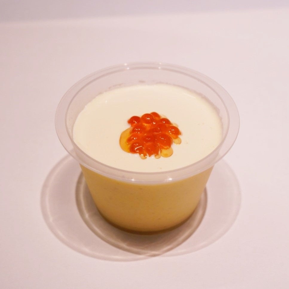 ホタテ・牛乳・生クリーム・卵のシンプルな材料で作る洋風茶碗蒸し。濃厚なホタテの旨味を味わっていただけます。