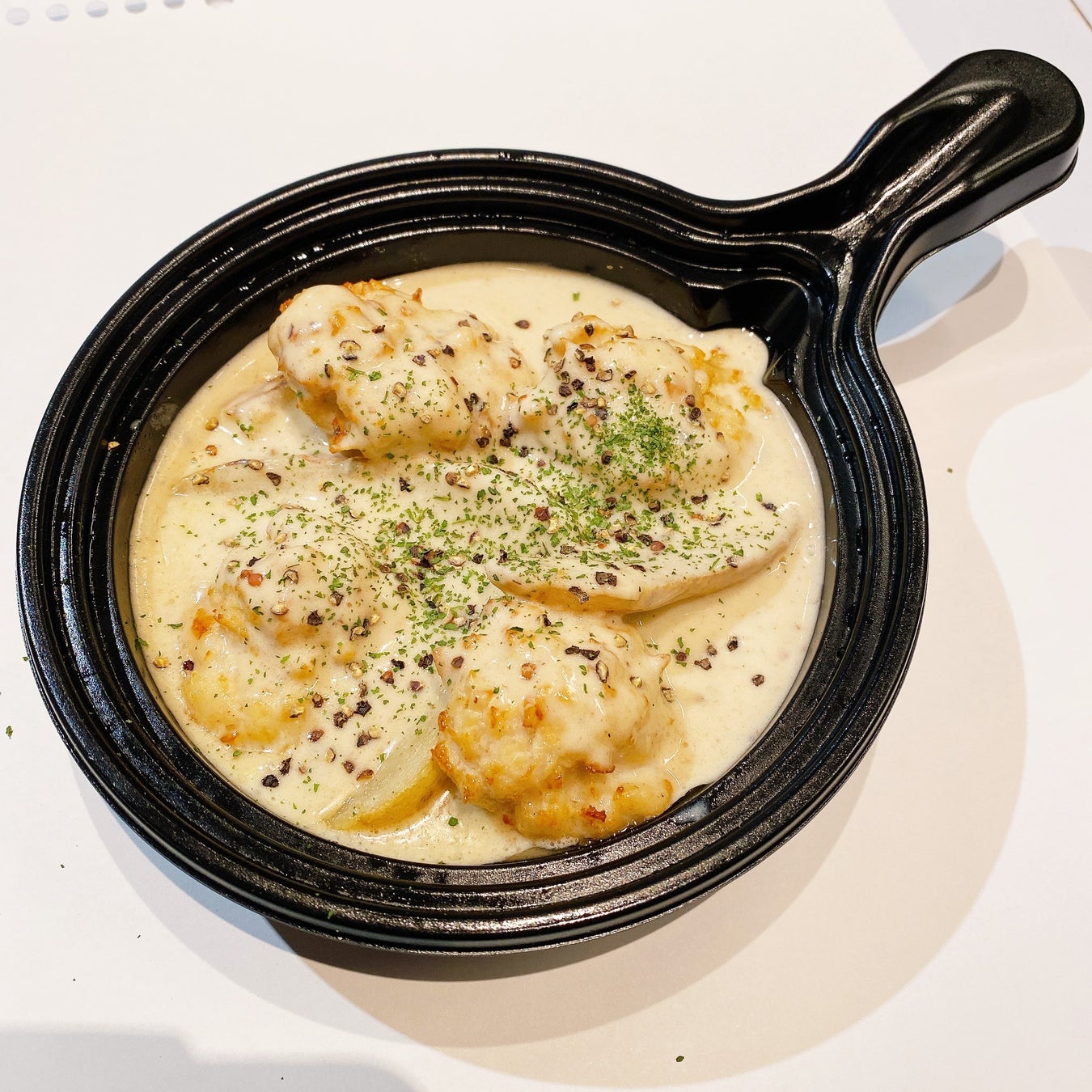 「大衆酒場 フレンチマン」で「串焼き」の人気メニューをテイクアウト用にアレンジ。ペッパーを効かせたブルーチーズ入りのベシャメルソースは、パンに付けるのもおすすめです。