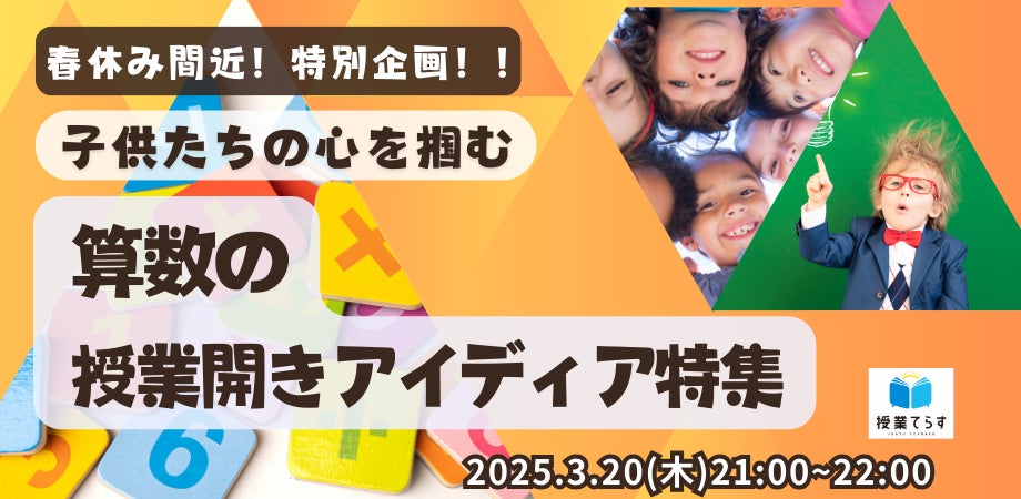 【3/20(木) 開催】新学期の算数授業を成功へ!「授業てらす」が贈る授業開きアイディアセミナー開催!