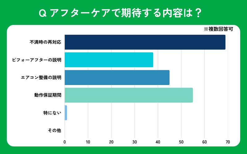 エアコンクリーニングのアフターケアで期待する内容は何ですか?(複数選択可能)